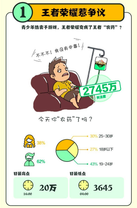近年来手游迎来风口,也呈现了相似《梦境西游》这样的爆款手游,但没有一款手游像《王者荣耀》这样带来全社会的遍及重视与争议。不少中小学生热心玩《王者荣耀》,引发家长忧虑,新华社、《人民日报》等央媒团体撰文批判。2017年,“你农药了吗”替代“吃了吗”成为年轻人碰头问好的常用语。